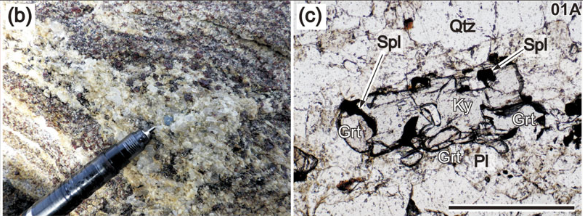 Berbeda dengan temuan sebelumnya di mana mineral kyanit hanya ditemukan terperangkap (sebagai inklusi) di dalam mineral lain, kali ini para peneliti menemukan kristal kyanit yang tumbuh secara independen di dalam matriks batuan. Bukti tekstur metamorf ini, digabungkan dengan pemodelan dan data geobarometri, menunjukkan bahwa batuan tersebut mengalami peningkatan tekanan terlebih dahulu sebelum mencapai puncak kondisi suhunya. Suhu dan tekanan memuncak pada kisaran 9 ± 0.5 kbar dan 770–820 °C, sebelum akhirnya mendingin kembali ke area stabilitas kyanit.